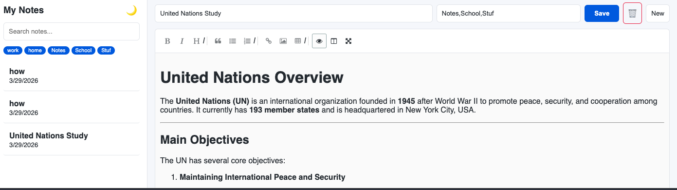 - Rich Formatting: Tables, checklists, code blocks, headings, images, and links — everything you need to make notes powerful.